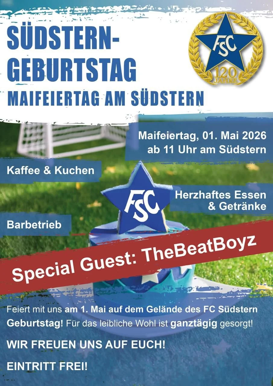 Kommt vorbei, bringt gute Laune mit und feiert mit uns 120 Jahre FC Südstern Karlsruhe – wir freuen uns auf euch!