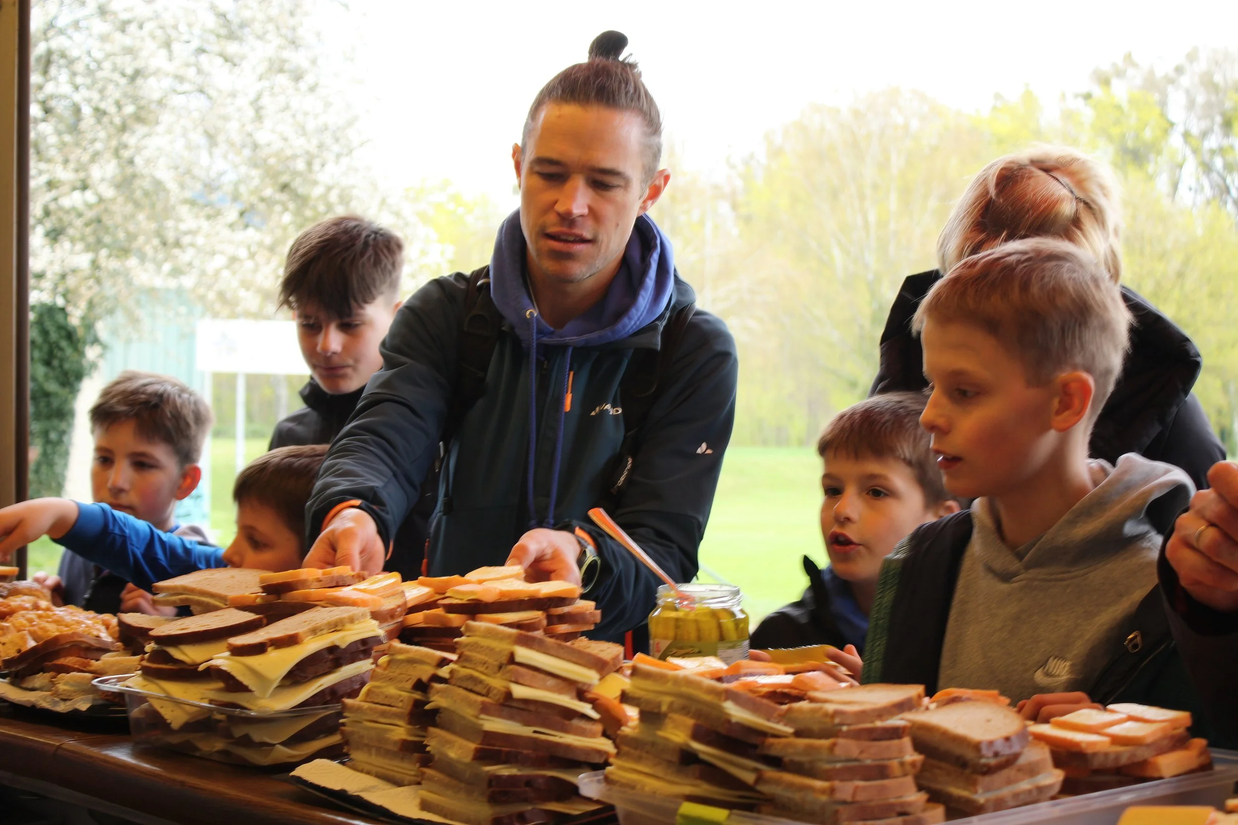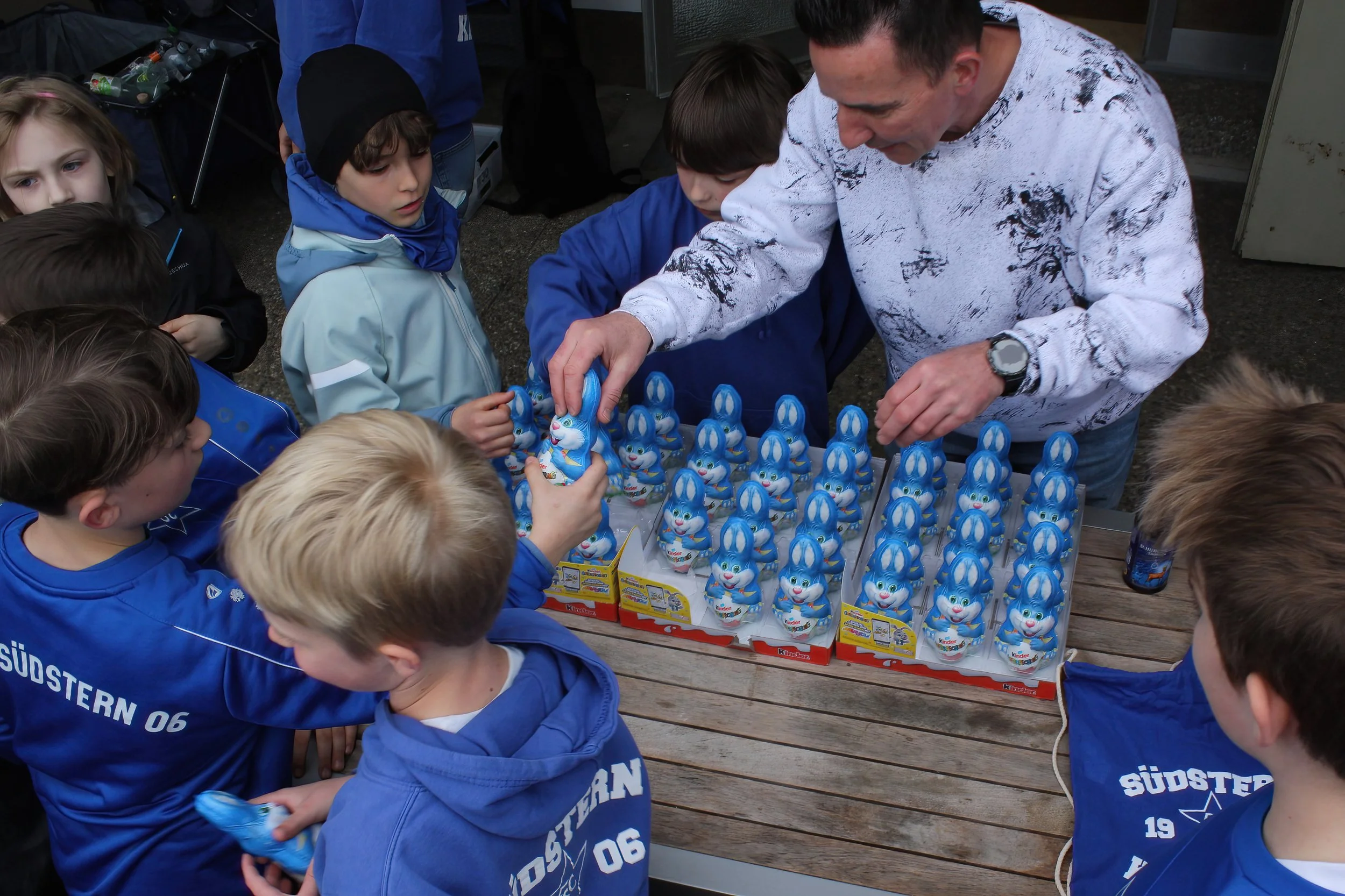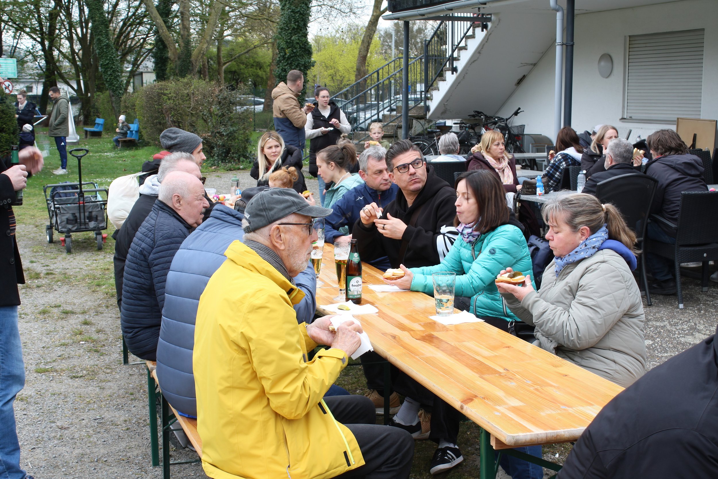 Am Ziel beim FC Südstern angekommen, wartete bereits die traditionelle Stärkung: frisches Käsebrot für alle Teilnehmenden. Für die jüngeren Gäste war die anschließende Ostereiersuche ein besonderes Highlight, das für viel Freude und Begeisterung sorgte.