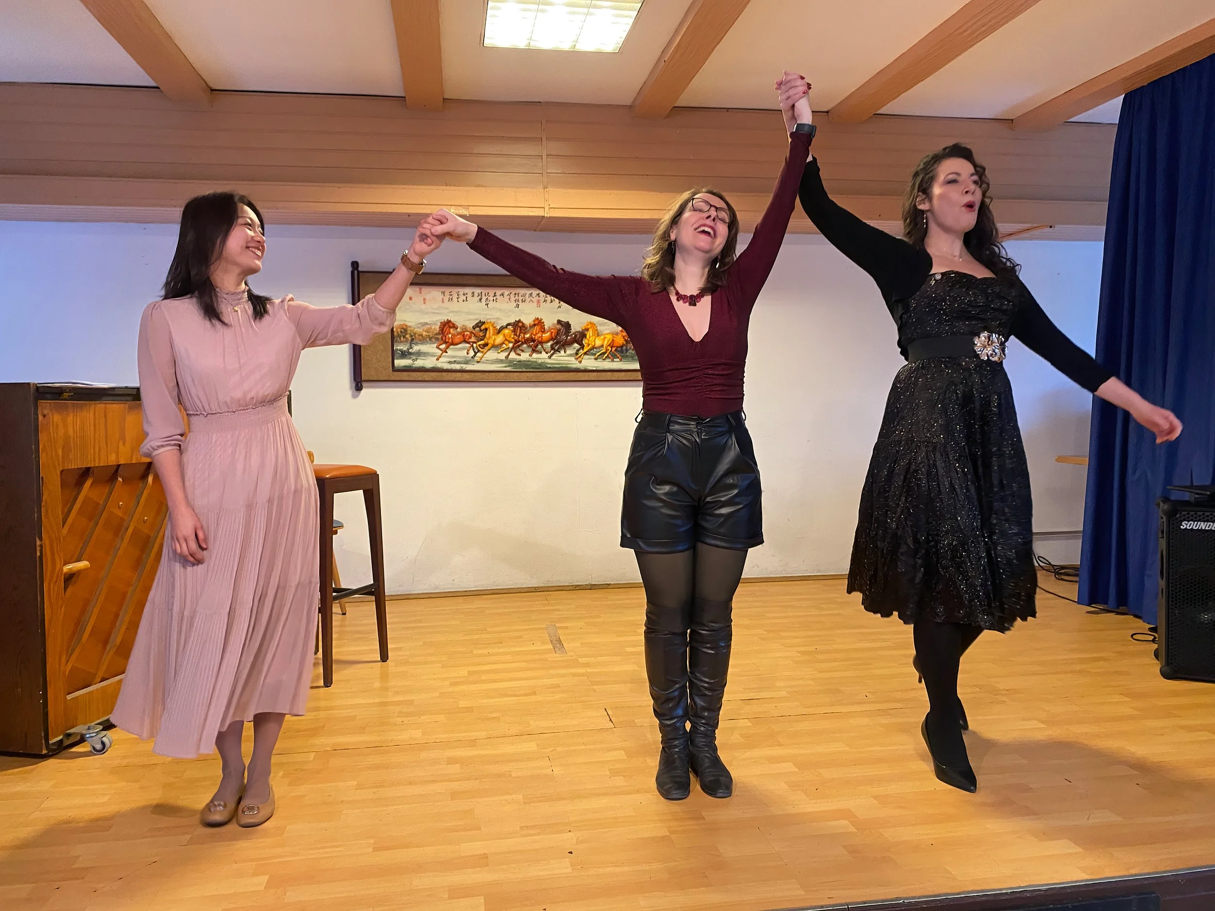Besonders das abschließende, eigens kreierte Medley mit zahlreichen FCS-Songs sorgte für große Begeisterung im Saal und wurde mit langanhaltendem Applaus honoriert. Die enge Verbundenheit der drei Künstlerinnen mit unserem Verein und ihr Versprechen, dem FC Südstern weiterhin treu zu bleiben, bewogen unseren 1. Vorsitzenden Dietmar Oberle spontan dazu, Felicitas Brunke, Clara-Sophie Bertram und Hsu-Chen Su zu Ehrenmitgliedern des FC Südstern zu ernennen. Die entsprechenden Urkunden werden ausgestellt und bei einer passenden Gelegenheit offiziell überreicht.